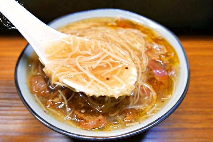 | 他們家的麵線的粗細不太一樣,應該是手工的,現煮熱騰騰的口感滑順帶點咬勁相當清爽,濃濃的柴魚香氣,沒有勾芡的太濃稠,味道也是相當的順口,香氣十足,艾編很喜歡的麵線,因為不是很愛香菜,所以沒有添加,不怕香菜的朋友們,多了香菜味道會讓整個味道更有層次更美味唷,這碗麵線份量超大的,當晚餐吃大碗的很適合。 |