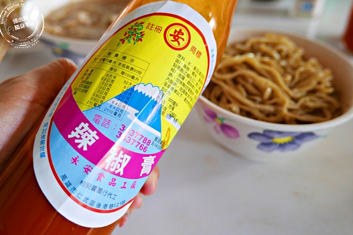 | 老闆娘大推的辣椒膏,桌上其實有蠻多瓶調味料,光是辣椒膏就有兩罐,不同品牌,艾編手上拿的,就是老闆娘他們自己喜歡吃的,但其實兩者艾編吃起來都覺得差不多,不過加辣的確還蠻好吃的。 |