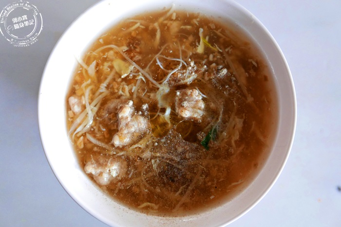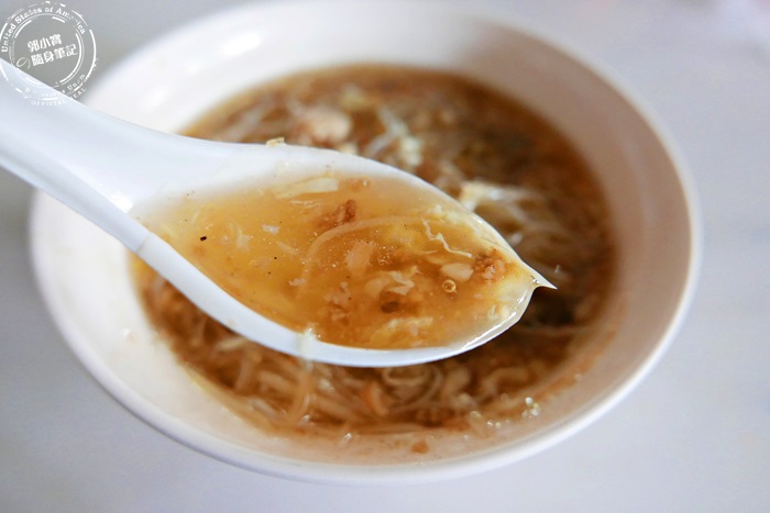 雖然他們家的招牌是寫著米粉焿,不過炒米粉好像很熱門,很快就銷售一空了,本來是想要點炒米粉來吃的,因為沒有了所以就點米粉焿,這米粉吃起來口感挺好的,軟軟QQ的蠻脆彈的,吸了很多的焿湯,味道超棒的,鹹香滑順的像絲絨般的綿滑,吸進嘴裡飽口濕潤,超豐富超滿足的,這比剛剛的乾意麵還要有味道,米粉焿蠻優秀的,可以在這裡立足這麼長時間,那清爽的焿湯功不可沒呀!