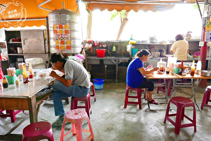 | 延著攤子周圍擺放桌椅,或許環境沒有很舒適,但也不髒亂,小攤子可容納的人數以這樣來說也蠻多的,以前最喜歡跟著媽媽上菜市場,因為這是婆婆媽媽們的新光三越來著,好吃又好逛,所以偶爾來市場裡尋找美食,也找尋心中那份記憶。 |