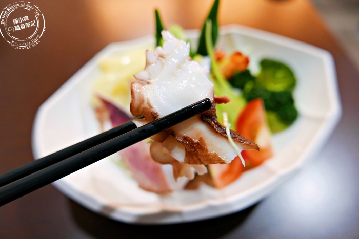 | 章魚腳切的略有厚度的薄片,一樣大塊厚實,新鮮甘甜,口感有章魚本身的韌性,咀嚼中與牙齒緊密纏綿的觸感太滿足了,又彈又Q又緊實,簡單川燙後沾點美乃滋入口,味道更香甜。 |