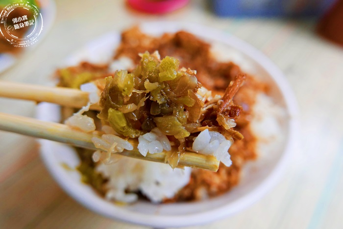 | 配上細碎的酸菜末,去油解膩之餘酸菜香氣更豐富了這碗飯,重要的配角非這酸菜莫屬了,有了這酸菜整碗飯一下就扒光光,太爽口太脆口了。 |