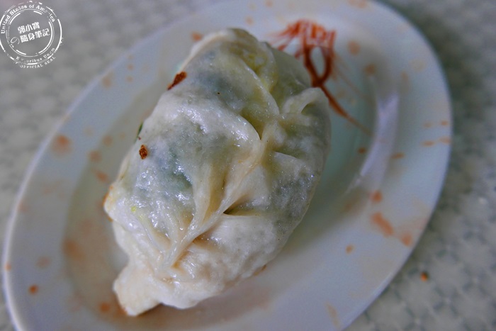 | 筷子夾起來都覺得重,手已發抖,份量十足啊!從外觀看的出來外皮的薄透,這韭菜煎包也是這家店的人氣商品,幸好還能吃到,太幸運了。 |