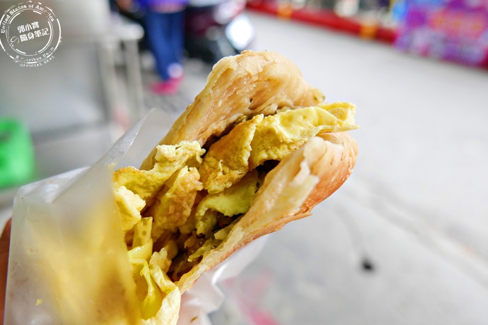 | 這炸開來的內餡,Hold不住的蛋皮,沒有雙手緊握燒餅,可是會讓裡面的餡料掉的到處都是唷!重點他們家的燒餅份量很大,老一輩的最愛這一味了,趕快來吃吃看這店裡的招牌吧! |