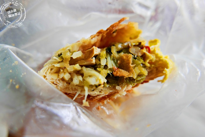 | 第一,他們的燒餅非常的薄脆,吃的到有點千層派的感覺,最外層烤的微焦酥脆氣息,很香很好吃很夠味,感覺只吃燒餅就很滿足了,他們燒餅真的很厲害,內餡的部分老闆很貼心的一半有辣一半不辣,這樣的味道剛剛好,不會太刺激,就不影響整體的味道,裡面不只有酸菜,還有筍絲跟豆干,超豐富的,鹹香水潤帶酸勁,每一口都是驚奇。 |