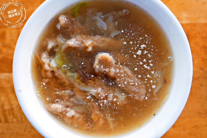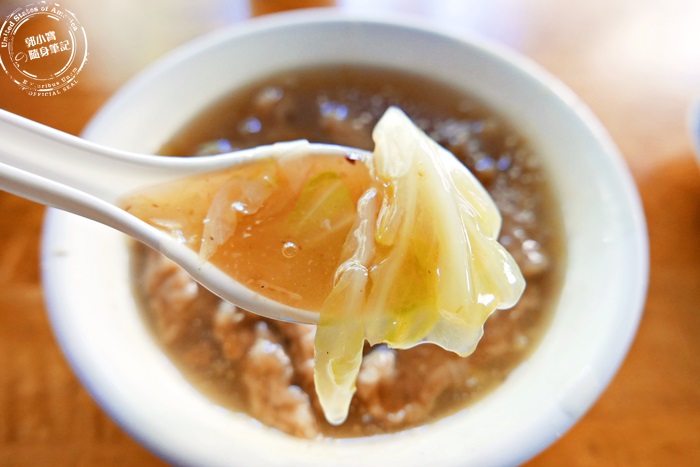| 湯頭有扁魚與蒜味,香氣是厚實的,但是喝起來是清爽的,簡單加點胡椒調味就很好吃,大量的高麗菜提升甜度,蔬菜的甜味及脆口的層次,大大的為這碗焿加分,勾芡也不會太濃稠,清爽滑順一下就溜進肚子裡了,還是有高湯鮮美甘甜的自然純粹,不需要再添加什麼調味料,直接喝原味的就很滿足很幸福了,愛慘了他們家的肉焿啦! |