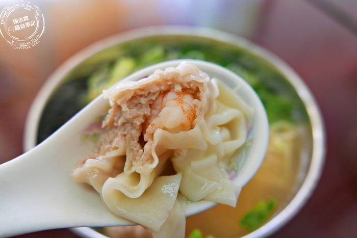 | 一碗裡面有四顆餛飩,咬開爆水與肉汁的鮮甜有點燙口,吃的時候要小心,餛飩的部分外皮非常的柔軟滑嫩,裡頭的豬肉新鮮有彈性,略略緊實的口感再搭配一整隻蝦的脆甜鮮美,口感超豐富的,香氣甜味鮮度都相當的有水準,完全不隨便,很用心的手工餛飩,難怪很多客人大老遠跑來只為了這一味,艾編的胃也被擄獲了。 |