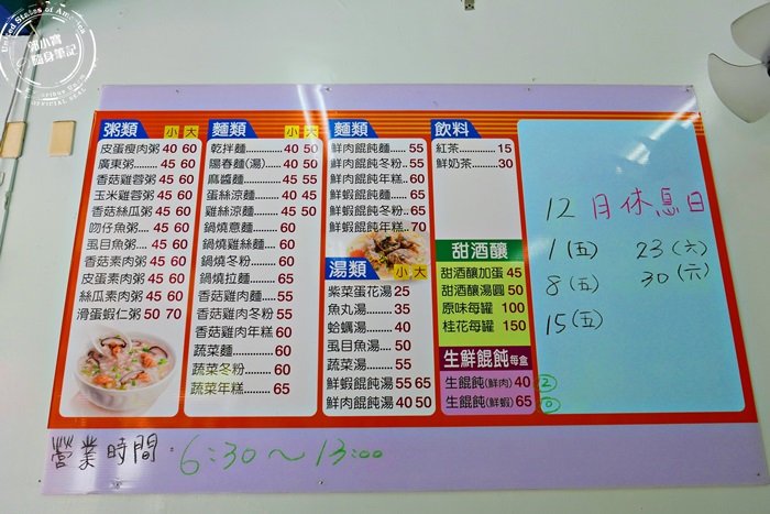 | 菜單直接掛在牆上,當月的公休日也會寫在上面,方便讓客人知道以免撲空,他們家的東西蠻多的,都是純手工的,涼麵、粥品、麵湯類、還有酒釀類的,什麼季節來吃都恰當,價格蠻親民的,第一次來真的蠻猶豫要點什麼的,所以就決定看人點什麼就跟著點,好像大家蠻喜歡他們家的餛飩,那就點個餛飩麵來溫暖一下飢餓的胃,再來個酒釀為另一個甜點胃補充滿滿熱量,有正餐有點心,一次搞定。 |