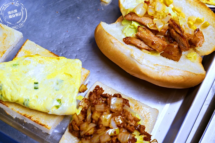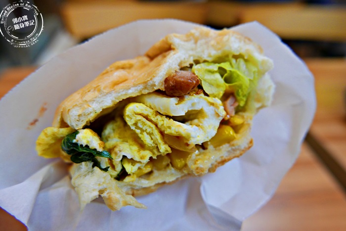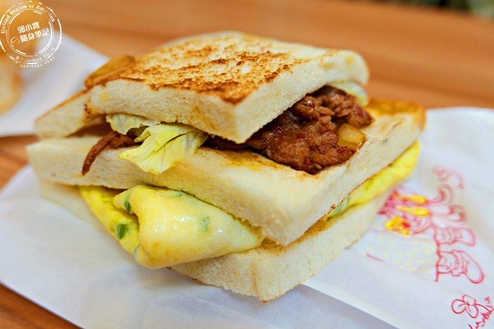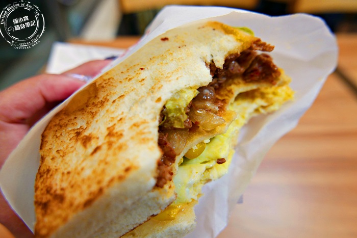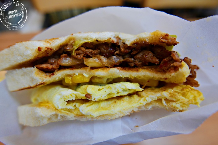 | 三片吐司兩大層塞好塞滿,完全不誇張,吐司會先裹上美乃滋,再夾入這些內餡,韓式燒肉味道很夠,香辣的讓人食慾大開,柔軟的豬肉加上洋蔥脆甜,十足的好味道,蔥花蛋軟嫩,蔥香四溢,一樣搭配了生菜跟甜玉米,除了口感更好之外,味道還很清爽香甜,去邊的吐司吃起來超級鬆軟的,大口咬下實在是太滿足啦!當學生們的早餐實在是再適合不過了,便宜又實在,吃的超滿足。 |