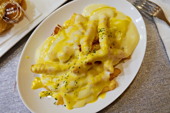 | 就是衝著這一堆起司,溶岩般的覆蓋住薯條,超愛起司的艾編當然不能錯過呀!這起司吃起來柔軟,不是有Q度的那種,可以拉絲拉很長,加上蜂蜜芥末,味道香甜滑順濕潤,起司的香濃讓人覺得舒服,薯條的部分是脆薯來著,較厚較飽口,大口吃起司跟薯條整個超幸福的,因為是蜂蜜芥末,所以整盤吃光也不會覺得膩口。 |