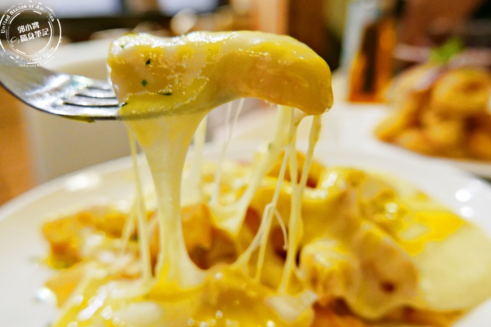 | 一樣的義大利麵,不過奶油的顏色沒有剛剛的牛小排義大利麵來的顏色深,所以味道當然比較溫和,濃醇香的奶味加上奶油香,濃郁滑順的味道與麵條的Q軟彈牙一同吃進嘴裡,實在是太滿足了,不得不稱讚他們家的義大利麵真的很優,而且份量給好給滿,就是要讓客人吃到爽。 |
