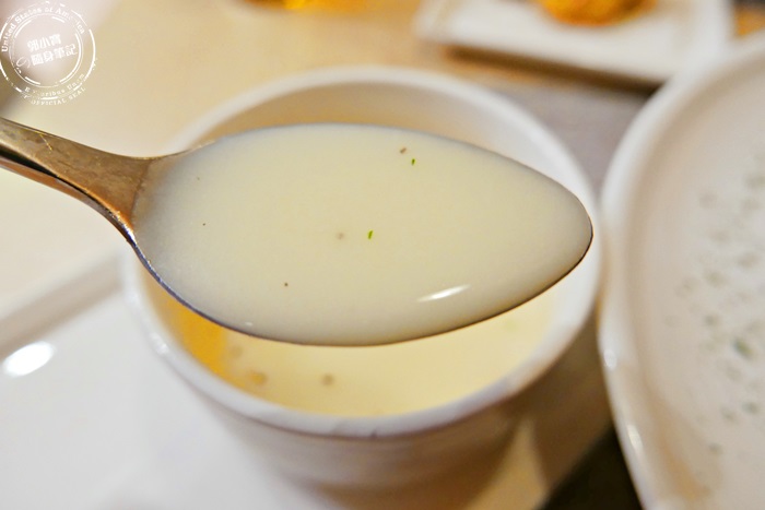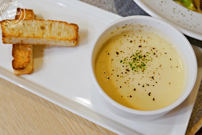 | 濃湯其實是算清爽的,沒有太濃郁太膩口,喝起來味道很香醇,清香順口,奶味喝的到,不會太濃稠,絲滑細緻感讓人好喜歡,目前為止餐點都感覺到有用心唷! |