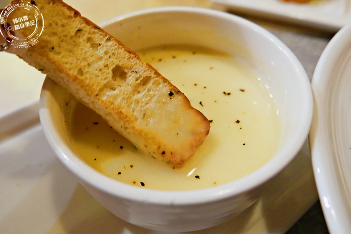 | 他們家的歐式麵包四個面都烤的酥酥脆脆的,受熱均勻,麵包的麵香很濃厚舒服,咬起來柔軟帶筋性,如果覺得單吃沒什麼味道的話,可以沾濃湯一起入口,濕潤度大增,多了濃湯的香醇風味,變的超好吃,艾編很喜歡這樣的方式吃唷! |