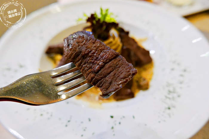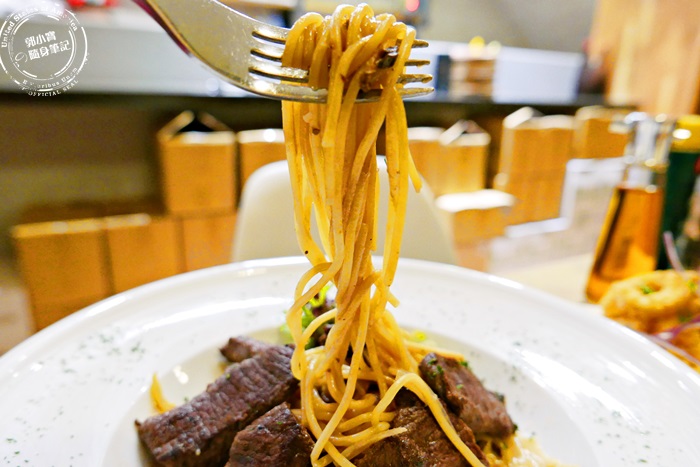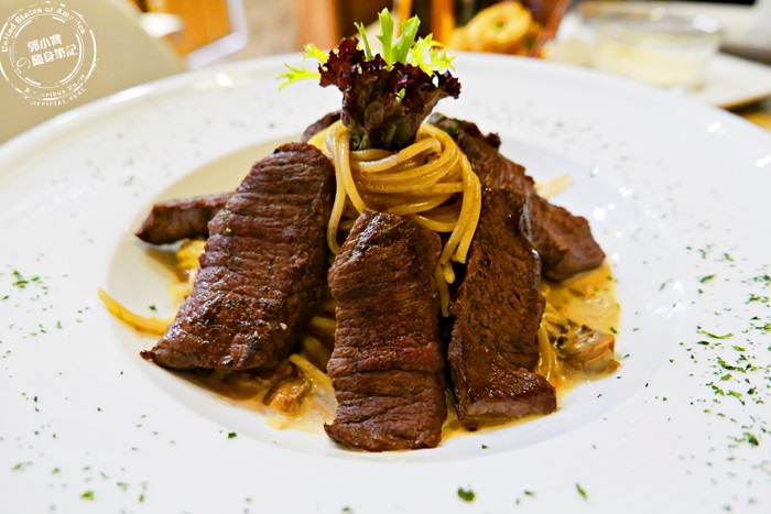 | 這牛小排義大利麵沒有太多的醬汁,但是味道很夠,而且煮的軟硬度適中,Q彈有嚼勁,每每咀嚼都能感受到濃濃的香氣,有菌菇跟微微的奶香,味道還不錯,單吃麵就好吃,在加上牛小排,簡直好吃到要升天啦! |