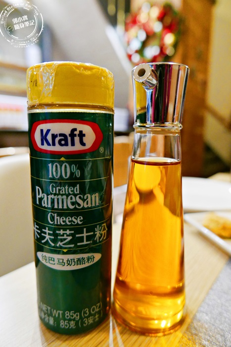| 店家會提供起司粉跟他們自製的辣油,如果覺得味道不夠,可以添加,像剛剛的牛小排義大利麵,就很適合添加辣油,味道上更有層次,而且非常和諧,香辣開胃,這辣油蠻厲害的唷!很推薦一定要加,牛小排帶有點微微辣度真的很適合,不過不敢吃辣的就不勉強了。 |