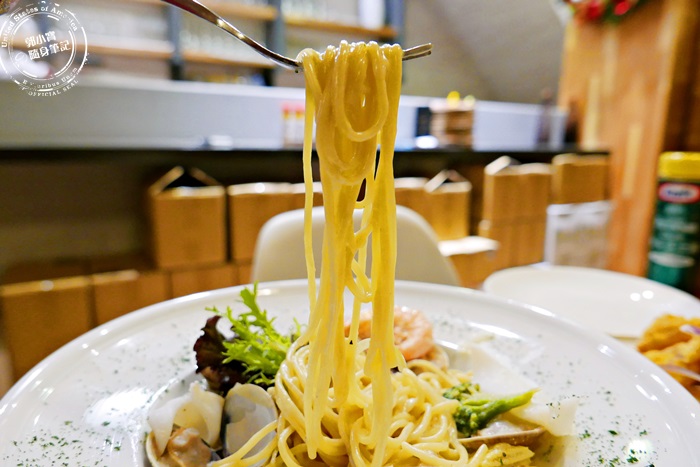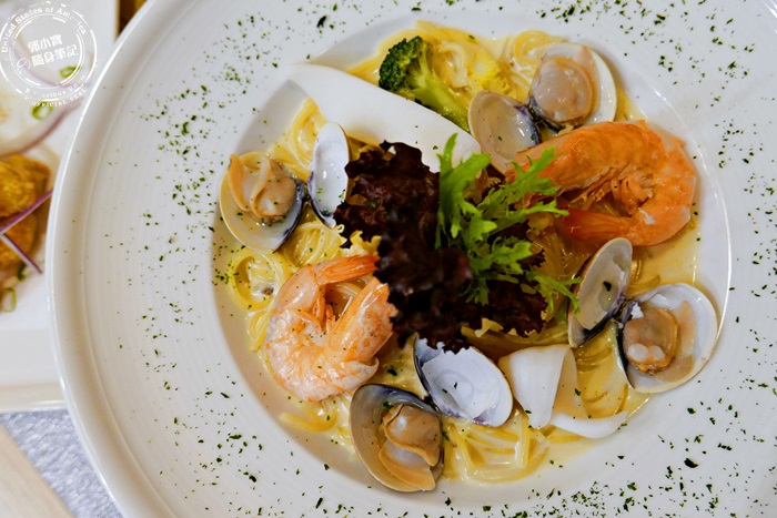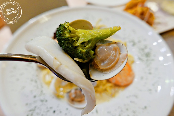 | 海鮮的配料有大顆飽滿的蛤蠣跟肥厚的花枝,吃起來鮮味十足呀!飽口滿足,花枝口感超級Q彈的,裹著奶油白醬增添香濃滑順感,味道更加分,除了海鮮還有花椰菜,非常的新鮮花椰菜的脆甜更豐富了層次,連配料都是相當的用心唷! |