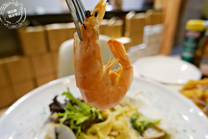 | 說到海鮮當然少不了鮮蝦囉!他們家的蝦子雖然不是太肥美飽滿,但是一樣新鮮,肉質鮮美,口感軟嫩Q彈帶微脆感,蝦子的份量也給的很足呀,滿滿的海鮮超實在的,雖然愛吃蝦,可是要剝殼好麻煩,可以有貼心去殼的服務嗎XD |