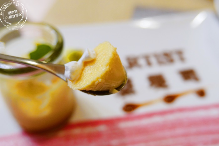 | B套餐的甜點是手工布丁,口感香甜綿滑,柔嫩香氣足,雞蛋與牛奶的香醇濃郁,在嘴裡意猶未盡呀!尤其是底部的焦糖,焦香味超舒服的,苦甜苦甜的味道太有深度,配上焦糖大加分,而且擺盤也相當的漂亮,還有店家的名稱在上面,好拍又好吃,滿足女孩兒愛吃甜點的胃呀! |
