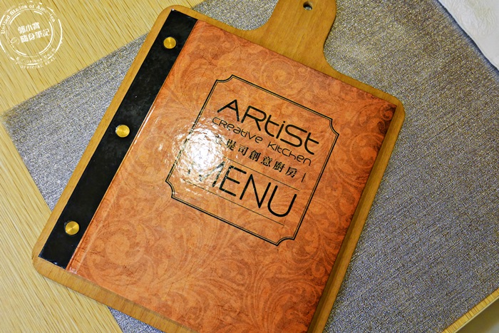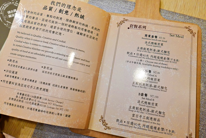 | 菜單很特別,是用粘版貼上整本菜單,好厚重的感覺呀!不過很可愛的,整體好和諧,感覺像是送餐上來,沒想到是送菜單,來看看有什麼好吃的吧 |