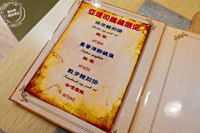 | 還有隱藏限定的餐點,提供給大家參考,抹茶豬肋排超特別的,雖然艾編是抹茶控,但還是乖乖喝抹茶飲品好了,帶入食材的抹茶,就留給想嚐鮮的你們囉! |