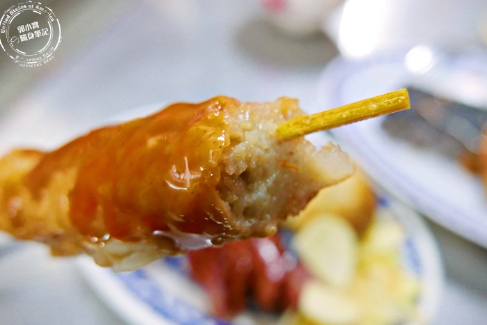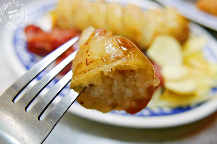 | 他們家的大腸外皮烤的酥酥脆脆,軟嫩Q彈帶微微焦香,裡頭的糯米軟硬度適中,保水度很夠,軟黏之餘還帶花生香氣與層次,口感整個超豐富,腸子裡的油脂滲進去米粒裡面,整個香氣超厚實超舒服,古早味的手工大腸就是這種魅力,讓人意猶未盡,百吃不膩呀! |