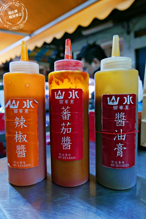 | 台灣人最愛的沾醬,每桌都有3罐調味料,他們家除了瓶子乾淨,還貼了他們家的專屬貼紙,明確的標示清楚,整個好優秀唷!這家雖然是老字號的老店,卻沒有老舊髒亂的感覺,後來才知道他們家原來總店在三民市場那邊,吉林街這裡是分店,一樣整頓的很好唷!東西又好吃,夜晚不知道要吃什麼嗎?來個台式關東煮讓胃飽足又升溫,再來份大腸包小腸,吃個過癮呀!道地的台式關東煮,暖呼呼的深夜食堂,高雄的朋友太幸福啦! |