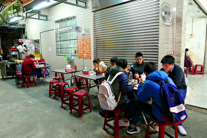 | 座位直接就在巷弄旁邊,上面有屋簷可以擋雨,不過這麼冷的寒冬,無法擋風,天然的冷氣冷颼颼,但是依舊還是有很多人享受戶外這種露天的感覺,天氣冷就是要多喝點熱湯來暖和身體,窩在路邊內用才更有感覺,座位數不多,有位子就要快快入座,好了~艾編要來去佔位子了。 |