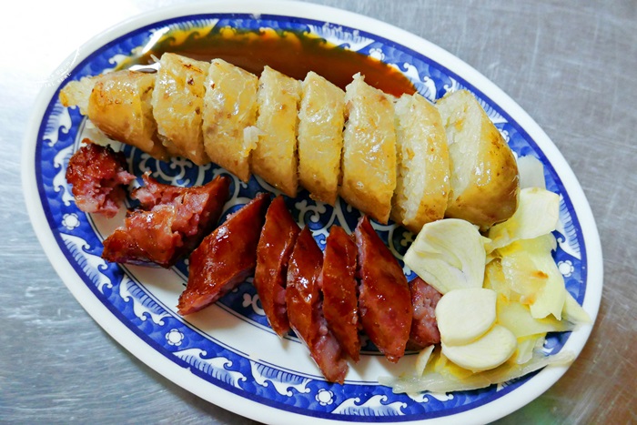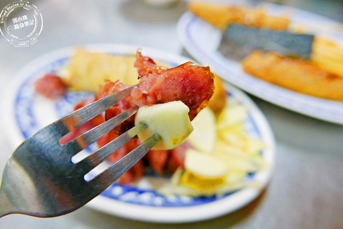 | 其實他們家的香腸,艾編覺得很划算耶!一條才$20,而且蠻大一條的,肥瘦適中香甜柔軟,外皮烤的焦脆,香氣十足豐富彈性,肉汁鮮美,再配上店家附的蒜頭或是薑片,味道香氣更濃郁,而且還能去油解膩,香腸真的一定要點來吃吃看,相當的古早味。 |