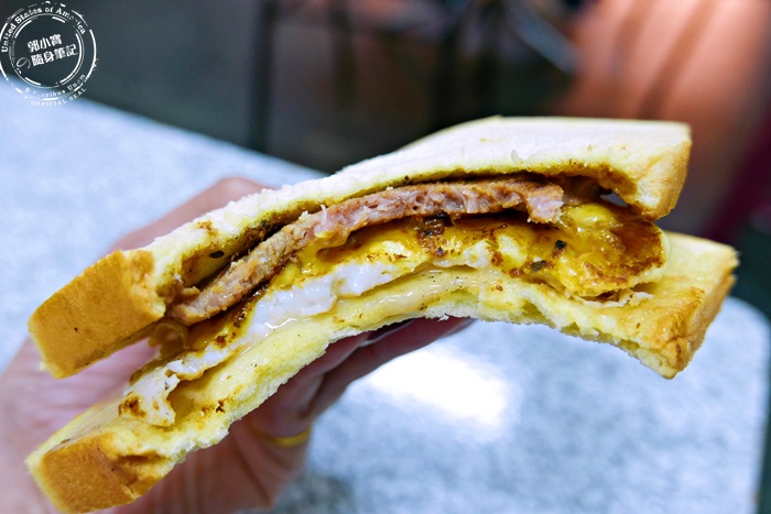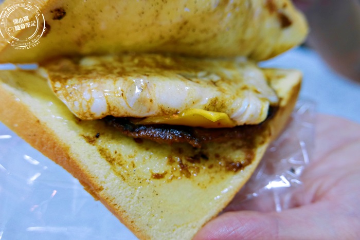 | 他們家使用的是雞蛋吐司,雖然有烤過但是觸感特別的柔軟,夾上現煎的雞蛋,還有現煎的鐵板豬,拿在手上是那麼樣的溫熱舒服,像是暖暖包一樣,整個吐司厚實滿足,撲鼻的香氣都流口水了,立馬來吃吃看。 |