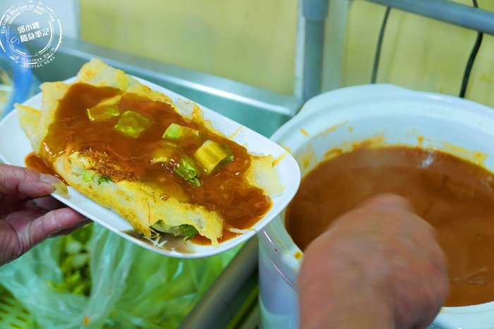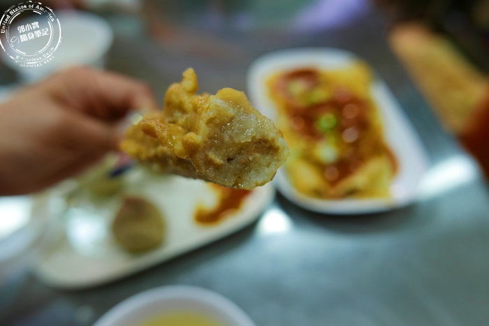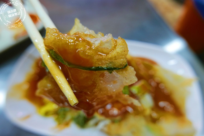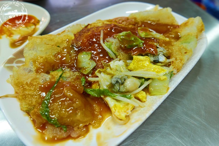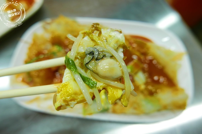 | 他們家製作一份蚵仔煎的時間要比一般的還要久,因為要確保所有的粉漿都煎的酥脆,所以過程不得馬虎唷!真的不需要動口,就能感受到那個脆度,非常厲害呀!筷子夾起來能感受到那厚度,粉漿使用太白粉跟地瓜粉下去調和,有點半煎炸的方式讓粉漿變得酥酥脆脆,咬在嘴裡的香氣太幸福了吧!真的超級香超級酥脆,又帶點軟Q,味道真的超棒,酥皮太讓人嚇到了,好吃到要尖叫啦!不過可能是因為剛起鍋,熱熱的香氣足口感又好,外帶的話可能會些許受影響,但真的很推薦大家來吃吃看唷! |