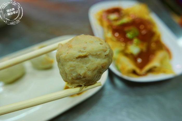 | 福州丸的外型太可愛了,好像雞蛋,因為老闆娘說這裡面是有包肉的,所以點來吃吃,一口咬下是先被那脆口Q彈的口感驚嚇到,軟彈好滋味呀!看看那圈厚實的魚漿就知道爽度肯定爆表啦!鮮甜美味,不過包肉的部分就比較少一點,還是吃的到肉燥的柔軟,油脂的香甜氣味,,一個吃起來好滿足唷! |