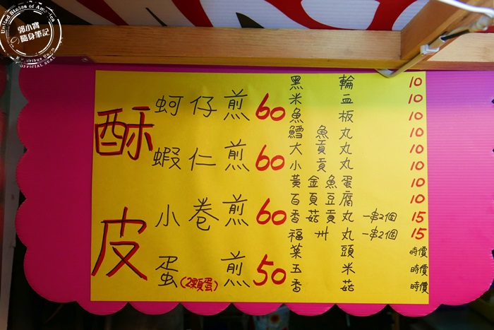 | 手寫的菜單基本常見的蚵仔煎都有,雖然是酥皮的,但是價錢沒有比較貴唷!關東煮的部分也是都銅板價,雖然種類不是特別多,但是台灣人愛吃的那幾樣一定有,除了有些特定食材價錢不一定,其他的都10塊、15塊,不傷荷包的好選擇。 |