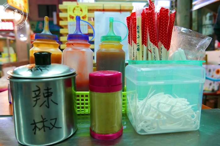 | 桌上醬料應有盡有,餐具那些也都很齊全,連牙線都貼心的準備了,老闆娘好棒棒喲!因為蚵仔煎是現點現煎的,所以需要時間等候,等的過程中當然要夾個台式關東煮來墊墊胃呀! |