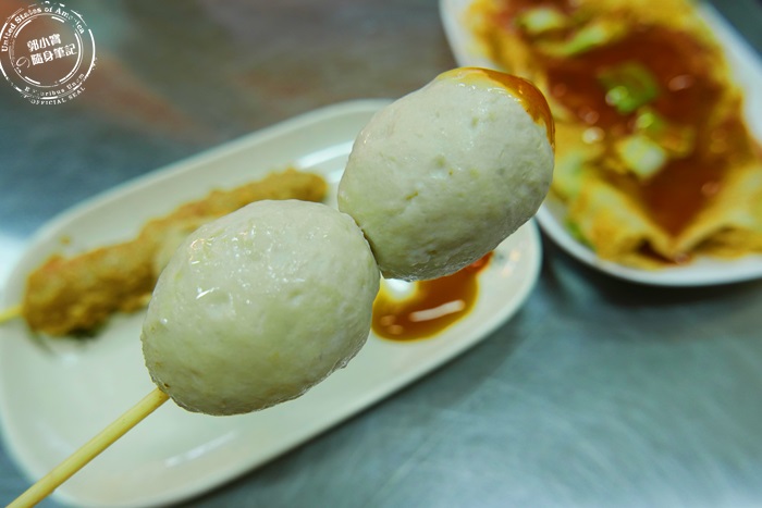 | 傳統黑輪就是要來上一隻解嘴饞,他們家的黑輪較修長,口感一樣很Q很軟,魚漿的香氣讓人意猶未盡呀!原本就有些許味道帶點甜,如果覺得不夠就另外沾醬吧!銅板價黑輪,每次來這種黑輪攤,一定要點的。 |