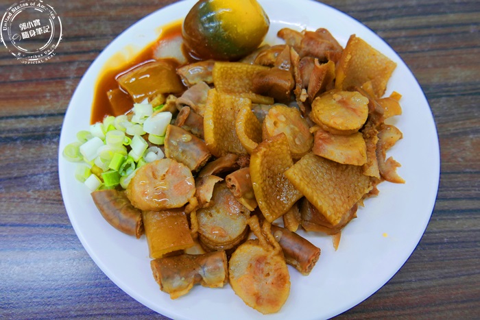 | 吃麵就是要搭配滷味小菜,這盤好豐富好大盤,艾編夾了豬腸$30/份、豬皮$20、豬頭皮$30/份、粉腸$30/份、皮蛋(忘了是$10還是$15) |