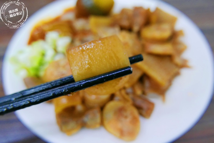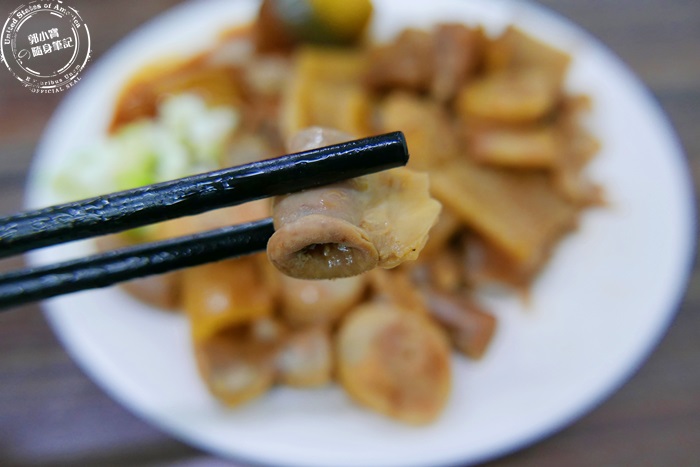 | 腸子處理的真乾淨,完全沒有腥臭味,切的一口大小剛剛好,很好咀嚼,軟Q香氣足,滷的很入味,能吃到裡面粉粉的感覺,還有外圍帶點脆的口感,豬腸的迷人之處莫過於此了。 |