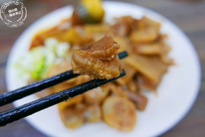 | 豬皮真的很Q很有彈性,咀嚼中還能吃到那膠質的感覺,滷的色澤很美,柔軟又Q彈的豬皮很受歡迎,同時也是女孩們的養顏聖品,便宜又好吃,所以艾編每次夾滷味小菜一定會吃豬皮。 |