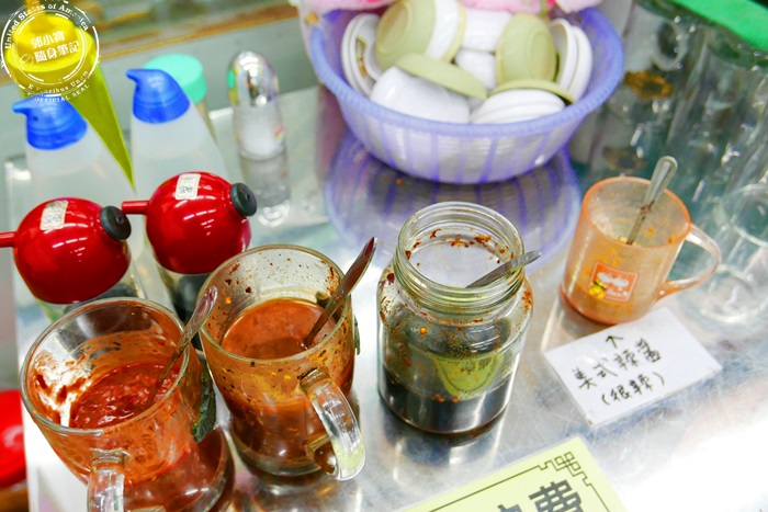 | 各種店家自製的醬料,放在進門左手邊的桌子上,應有盡有的調味料還有小碟子,都是讓客人自行取用,切勿浪費唷! |