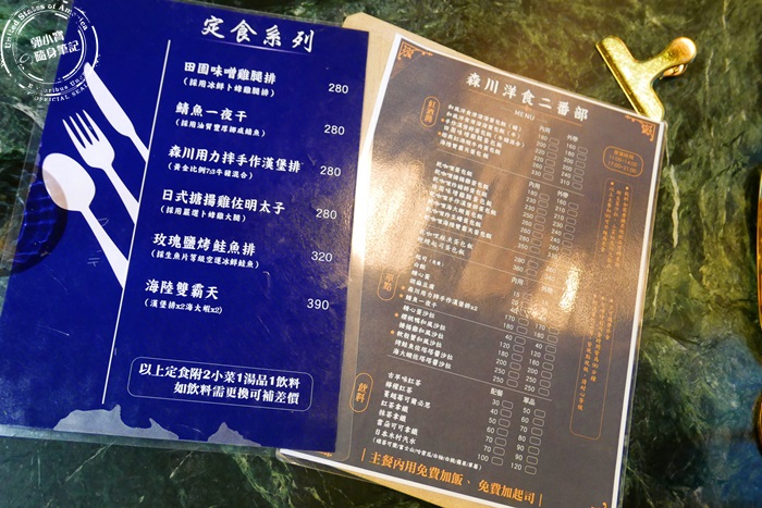 | 菜單有日本風格的定食,也有單點的主餐,搭配紅酒醬跟咖哩醬的部分,主餐部分可以加購套餐$90,附生菜沙拉、小菜及30元飲品,餐點的部分在$160~$390之間,小資族跟學生都負擔得起的,重點這裡很有氣氛,有著超高人氣,假日絕對要訂位的,想來的朋友們記得預約呀!因為座位有限。 |