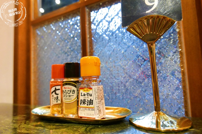 | 桌上的桌號牌也是很有日本風味,還有來自日本的調味料,最百搭的七味粉,基本款的胡椒粉,還有愛吃辣的朋友最喜歡的辣油,配上那有古典美的窗戶,立刻連微小的細節都變得唯美。 |