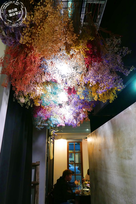| 令女孩兒為之瘋狂的乾燥花天花板,好繽紛好美呀!這是往洗手間通道的美景,讓少女可以瘋狂的拍美照,看了心情大好,現在乾燥花非常的吸睛受歡迎,這麼有氣氛的店家怎麼能少了乾燥花元素,是不是美極了! |