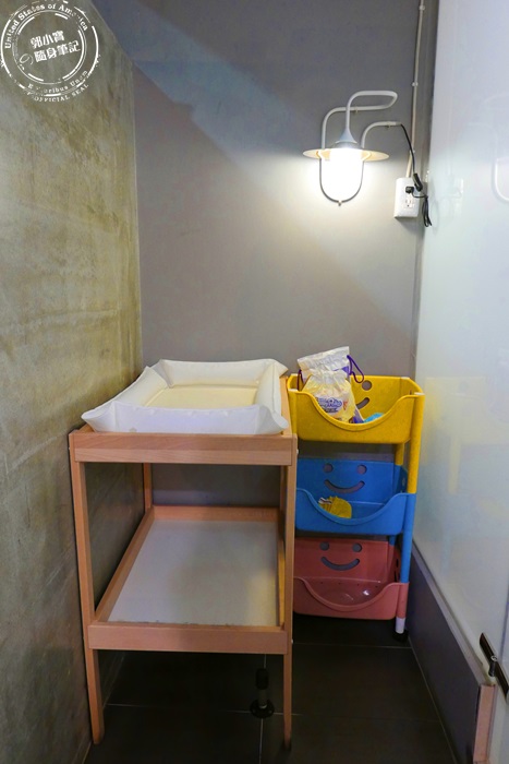 | 走道盡頭還有提供給媽咪們換尿布的地方,超貼心的,爸媽們不用再覺得帶小孩出門很麻煩了!店家細心周到,用餐過程肯定愉悅的。 |