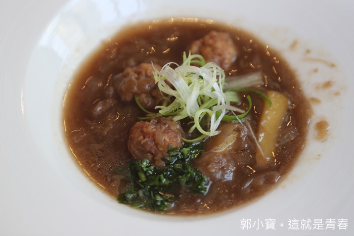 | 法式洋蔥湯幾乎很多排餐店都是基本配備,洋蔥湯的滋味濃郁是基本水準,但是這次他們家的洋蔥湯還挺特別的,搭配的手工雞肉丸真的很好吃,口感非常好以外,裡面還有焦糖蘋果,焦糖蘋果跟法式洋蔥湯搭配在一起的滋味挺特別的,非常搭口呢!! |