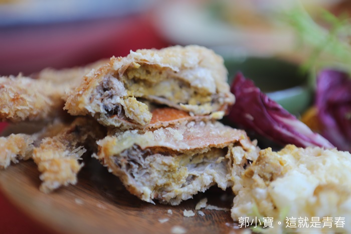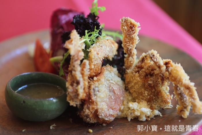 | 沙拉就上了軟殼蟹是要嚇唬誰阿,這個還挺重本的,軟殼蟹一口咬下那濃郁的海鮮滋味跟蟹肉的甘甜一整個就充滿了嘴理,下面還有馬鈴薯泥搭配以外,重點是我第一次用軟殼蟹沾法式油醋,因為我印象中軟殼蟹最好的朋友應該是咖哩,油醋提升了海鮮的甘甜,比較不膩也爽口許多,可以試試看沾法式油醋,挺不賴的。 |