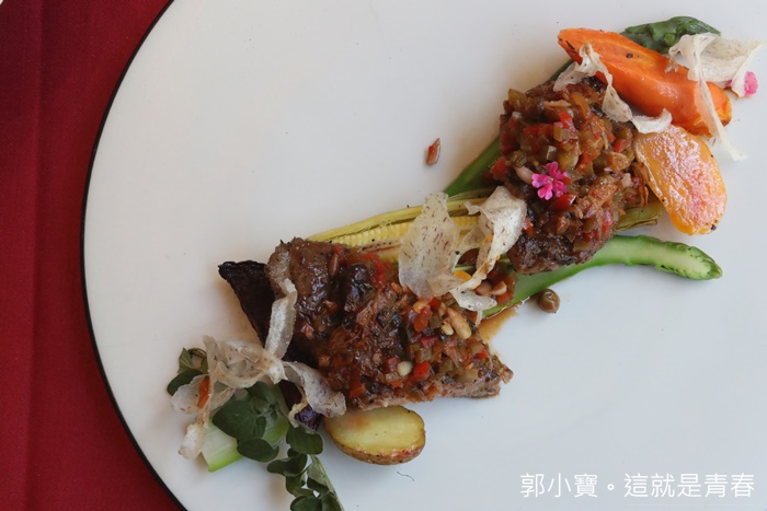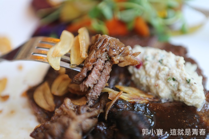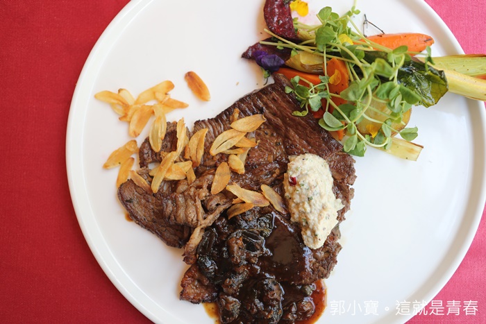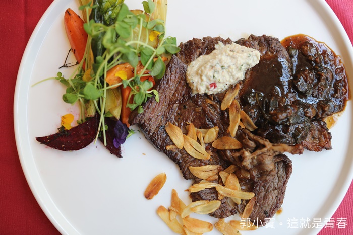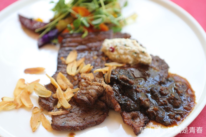 | 熟度的部分都是固定的,因為全熟的關係,所以主廚選擇不用厚切讓媽媽們比較方便入口,搭配牛骨醬汁真的非常的美味以外,香草泥的味道也非常的,一整份牛排吃完分量還挺多的。 |