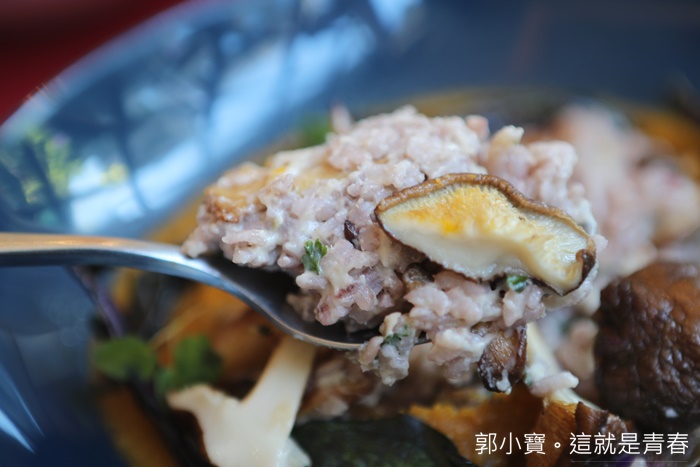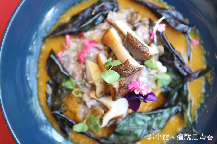 | 自從它們家的墨魚燉飯後我覺得又出現了一道我超愛的燉飯,就是這一款紫米奶油燉飯,真的非常美味以外,那奶油香濃滑順入口以外,蔬菜蟹黃醬的滋味真的太美妙了,一口燉放放入口中那滋味一層一層的層次漸漸透了出來,我真心超愛這一款燉飯的,搭配牛菌菇增加口感的提升也很棒!! |