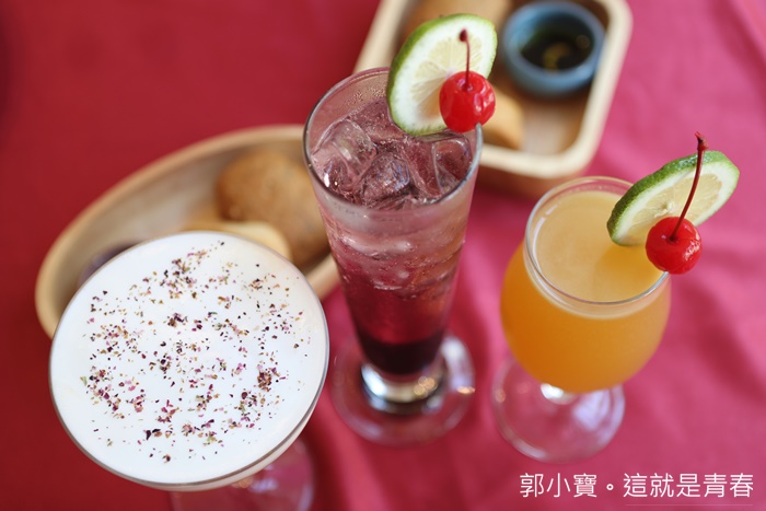 | 飲品的部分三選一,分別是花蜜百香玉露、典藏玫瑰拿鐵、檸檬雪青氣泡飲三款都非常搶眼,我個人覺得典藏玫瑰拿鐵最吸睛,三款都是冰飲為主,檸檬雪漆器泡飲比較適合年輕人。 |