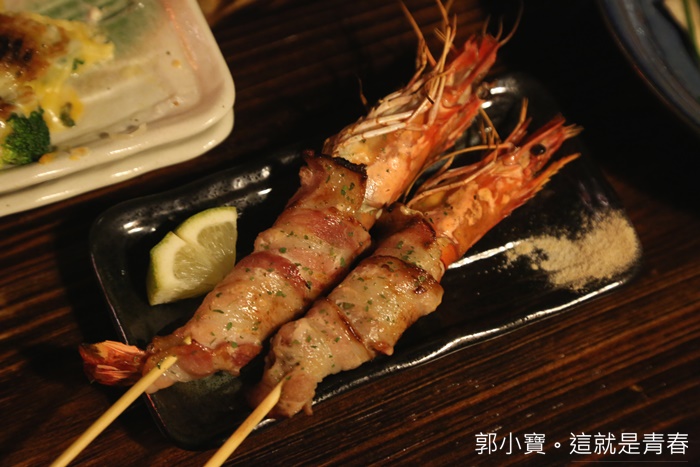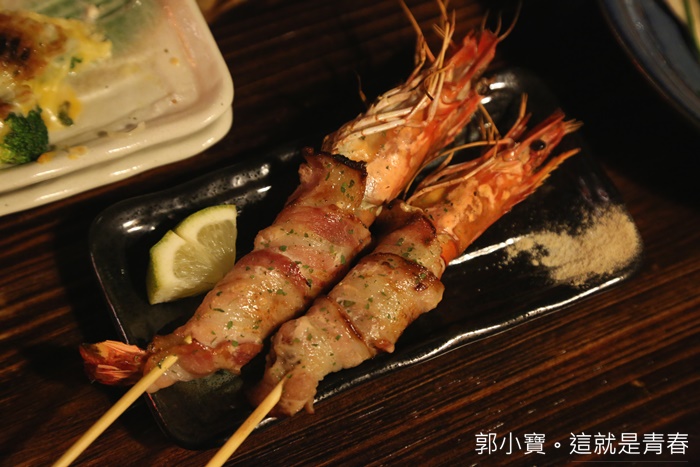 | 來林北烤好就是要點上她們家的招牌串物,培根捲大蝦,雖然後來有很多居酒屋都模仿它們做培根捲大蝦,但是吃來吃去還是她們家的水準最厲害,鹹香的培根包裹著剝殼後的大蝦,一口咬下那滋味真的非常搭,第一次吃到的時候簡直驚為天人,瞬間一個人就默默嗑掉了四串。 |
