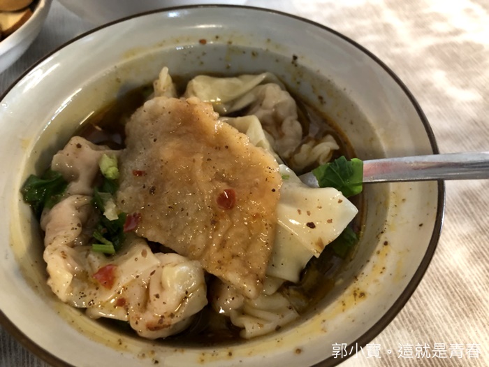 | 它們家的扁食外皮比較厚所以吃起來比較有口感,跟溫州大餛飩那薄嫩的口感完全不同,內餡豬肉非常新鮮。 |