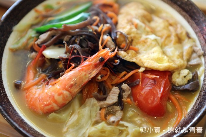 | 看看這超大一碗的搶鍋麵真的塞滿了各式各樣的食材,一整個超級豐富的阿,重點是一端上來就飄散著陣陣的香氣,搶鍋麵是怎麼搶鍋我是不知道啦,但是看到這一碗超彭湃的海陸搶鍋麵就是一個字,爽!! |